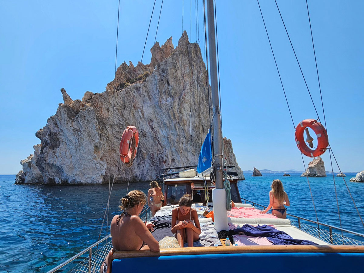 That’s why, on days when the weather isn’t perfect, we recommend our amazing West Sifnos Cruise. With calm seas, shorter distances, and many beaches close to each other, you’ll enjoy more time in the water, more stops, and just as much fun.