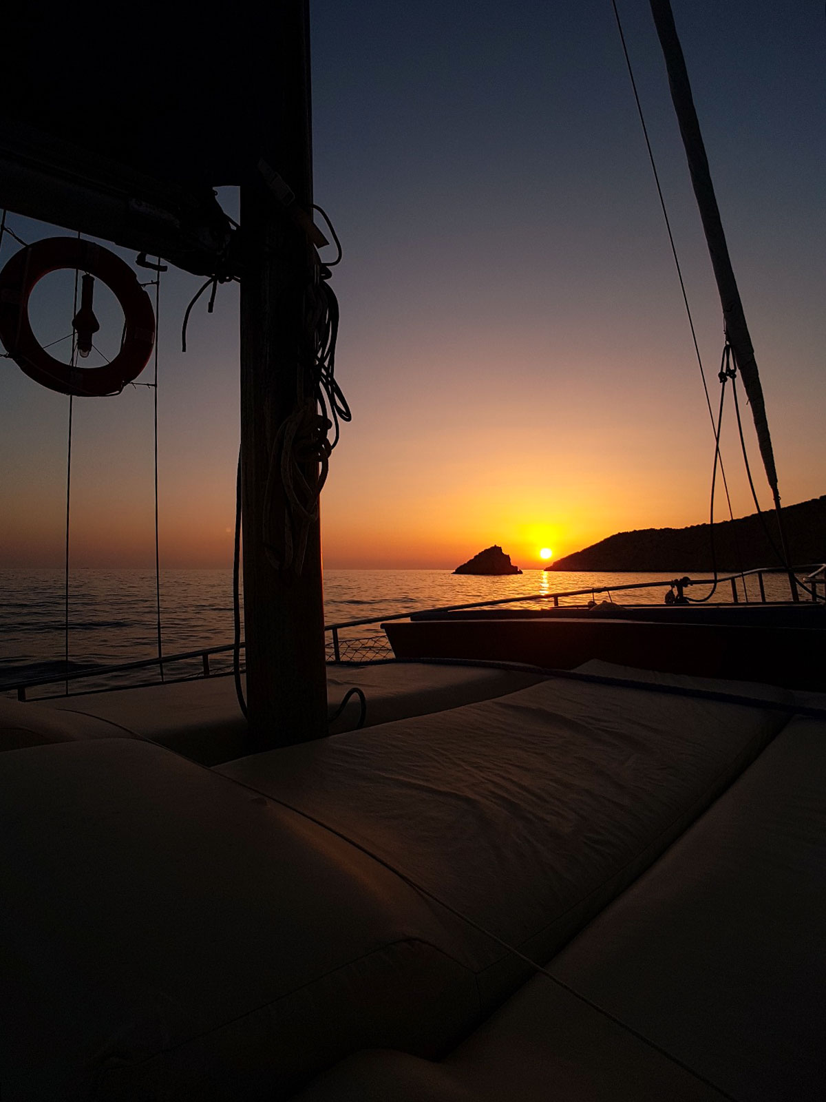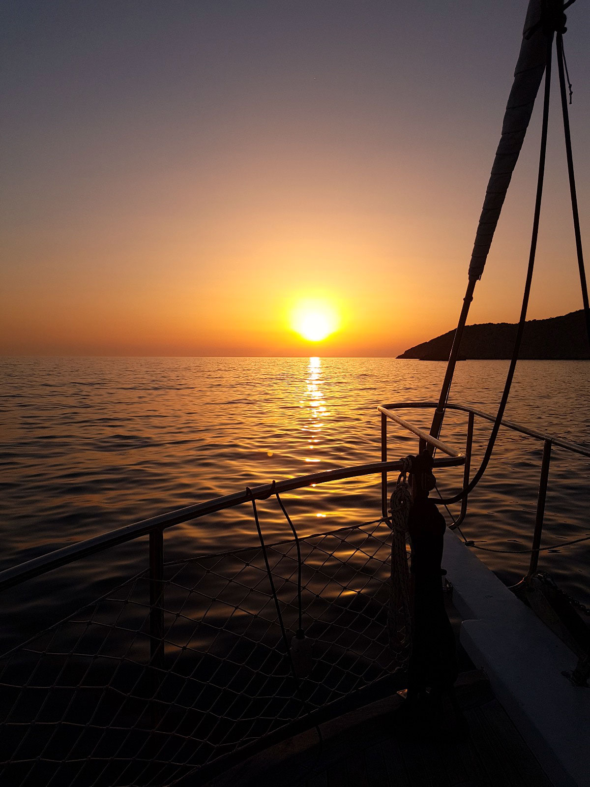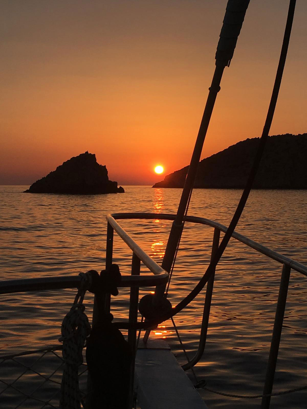 Take in the breathtaking views of Sifnos as we follow the setting sun and end the day anchored off the uninhabited islet of Kitriani, waiting for the sun to vanish below the horizon.