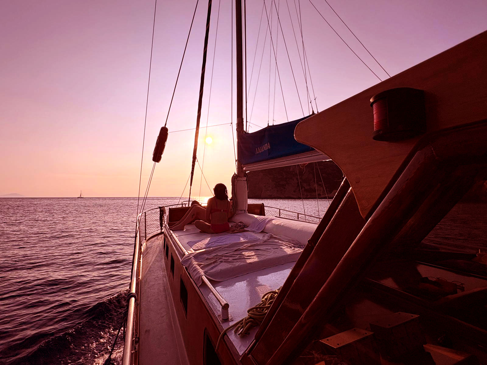 Join us for a unique journey aboard Amanda: the SUNSET APEROL SPRITZ COCKTAIL CRUISE. Departure is 3 hours before sunset (Sifnos time), return at sunset. We'll sail along the western coast of Sifnos, stopping at the stunning bay of Fikiada.
