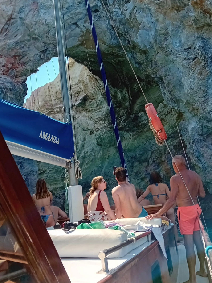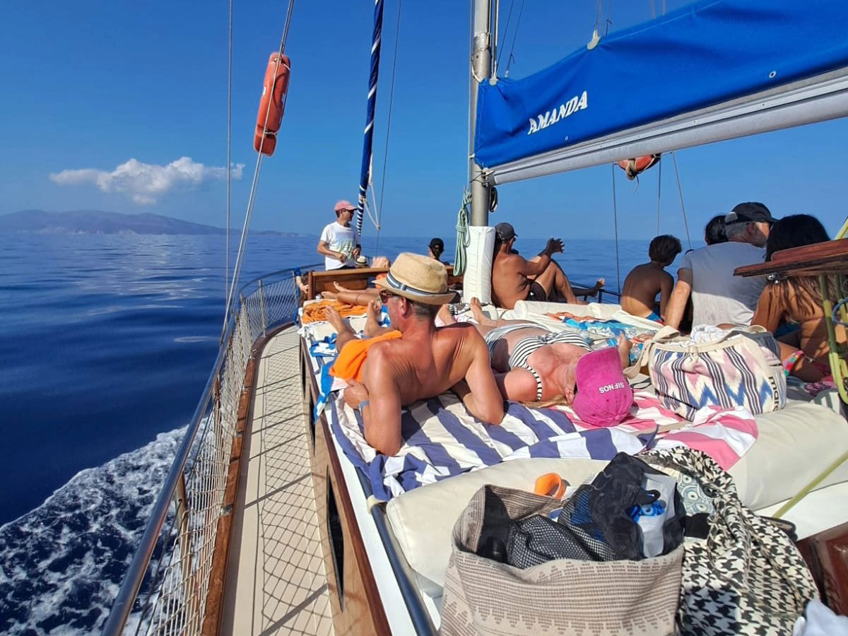 Whether you're swimming, sunbathing, or savoring the delicious handmade Italian food and vegan/vegetarian-friendly snacks, every moment aboard Amanda is part of an authentic Mediterranean adventure.