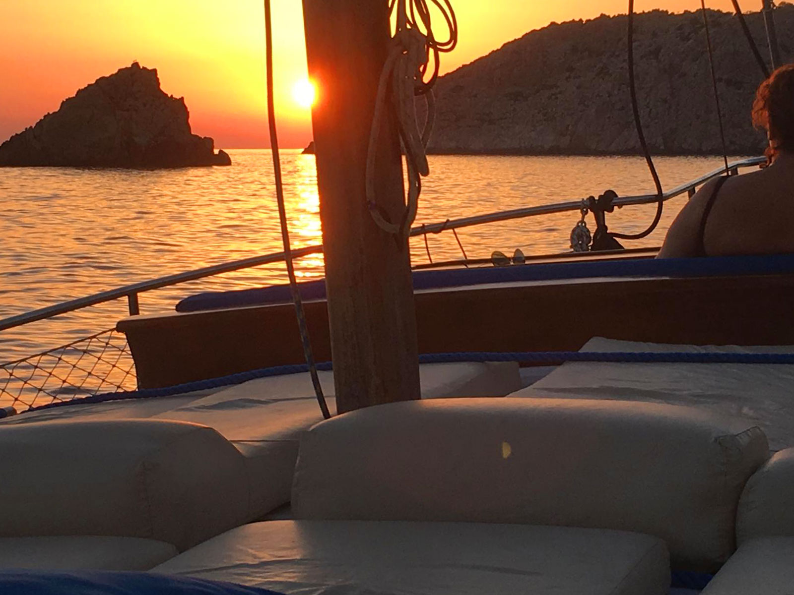 Take in the breathtaking views of Sifnos as we follow the setting sun and end the day anchored off the uninhabited islet of Kitriani, waiting for the sun to vanish below the horizon.